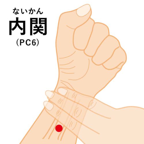 二日酔いや車酔いなどにも効果があり、市販でも内関バンドというツボを刺激してくれるグッズが売られているほど認知されているツボです。