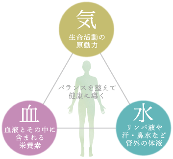 まず東洋医学では、健康は「気・血・水」の巡りによって保たれると考えます。特に「気」は、生命活動を支える大切なエネルギーです。この「気」が弱り、エネルギーの巡りが滞ると、いわゆる無気力のような状態になります。